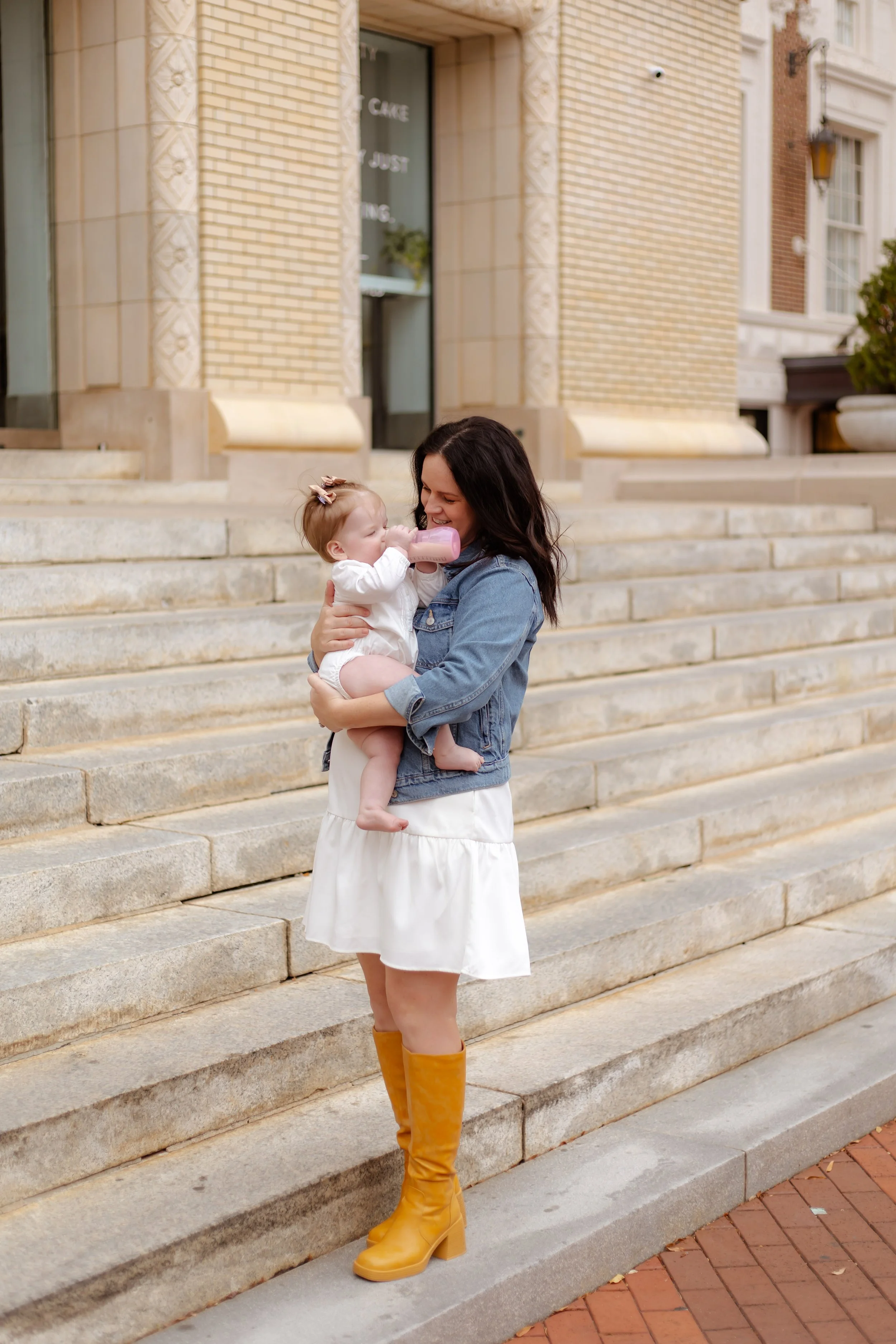 My creations often feature bright abstract pieces, floral designs, and dreamy landscapes. They’re full of emotion—especially now, as I navigate life as a new mom to my beautiful baby girl, Dakota (“Kody”). Welcoming her into our lives after nearly five years of infertility has been the most profound and emotional journey. On the hardest days, my studio floor became my solace, where painting helped me process loss. And somehow, the deepest sadness gave rise to some of my most vibrant and beloved pieces.